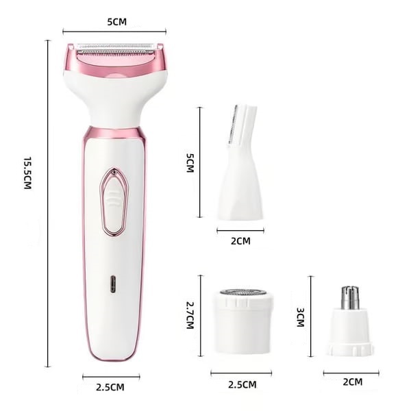 Pakiet zawiera: 1 x golarka elektryczna LUNATRIM do bezbolesnej pielęgnacji 4 nasadki (nos, twarz, brwi, ciało) Kabel USB do ładowania Szczoteczka do czyszczenia