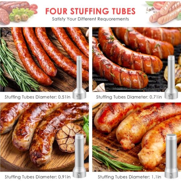 Wyposażona w 4 tuby PP i 2 szczotki, ta nadziewarka do kiełbas jest idealna na świąteczne uroczystości i spotkania rodzinne.